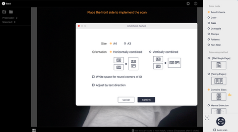 This scanning method is normally used in card scanning. Combine two sides of the cards or different pages of the passport into one page.