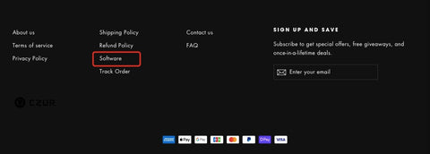 1. Scroll to the navigation section at the end of the CZUR official store, you’ll see “Software” there