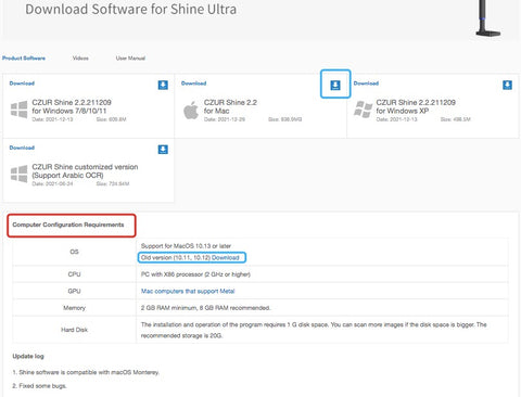 2. You will be redirected to the download interface of CZUR official website, select the model of the scanner
