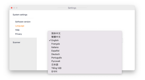 Simplified Chinese, Traditional Chinese, English, French, Italian, Spanish, Germany, Portuguese, Russian, Japanese, Vietnamese, Korean